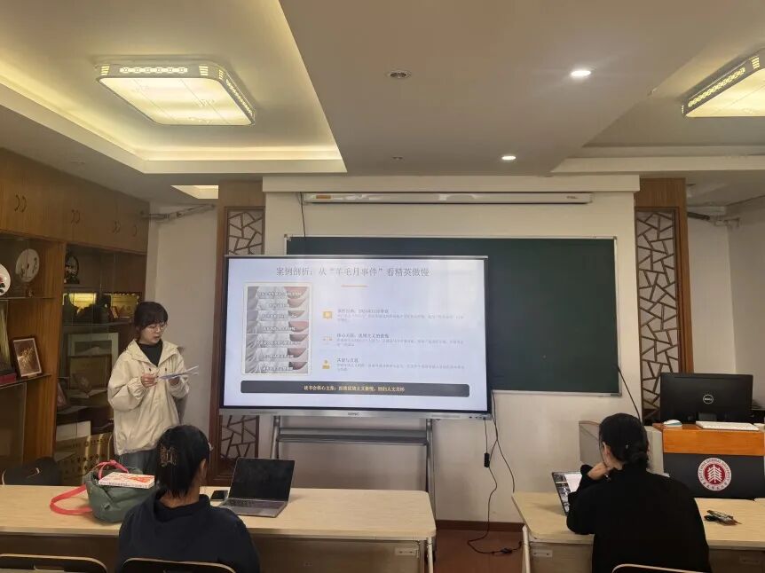 在自由讨论环节,同学们纷纷结合自身求学、生活的经历,分享了自己与优绩主义的正面相遇,真实的感悟与案例,让这场思想碰撞更具温度与现实意义。高乐川同学分享了自己参加腾讯面试时的观察。他表示,精英群体在竞争中易出现傲慢陷阱。当身处各高校顶尖学子聚集的面试场景,容易陷入“自己的想法更高明”的认知误区,听不进他人意见,而这恰恰是团队合作与长期发展的大忌。同时,他提出应直面现实的选拔困境。在资源有限、求职者众多的背景下,相对于名校光环和成绩奖项,展现自己解决实际问题的能力和个人潜力更为重要。李欣老师也借此提醒大家,求职中的筛选结果往往受多种因素影响,不必将成功或失败完全归咎于自身,更不必因一次结果而否定自己的全部努力。